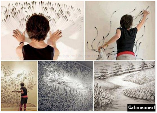 Seorang pelukis yang berasal dari New York ini memerlukan menggunakan cap jari untuk membuat sebuah lukisan yang indah.Beliau tidak memerlukan berus ataupun pensil serta kanvas lukisan bagi menghasilkan karyanya. Ayuh jo kiter hayati lukisan beliau .