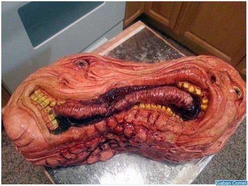 Untuk mengejutkan teman lelakinya pada hari jadinya, seniman berasal dari San Francisco, Vicky Knoop memutuskan untuk membuat kek harijadi berbentuk wajah terbelah dua dari filem seram 1984, The Thing. Hasilnya adalah sebuah kek yang benar-benar menyeramkan.