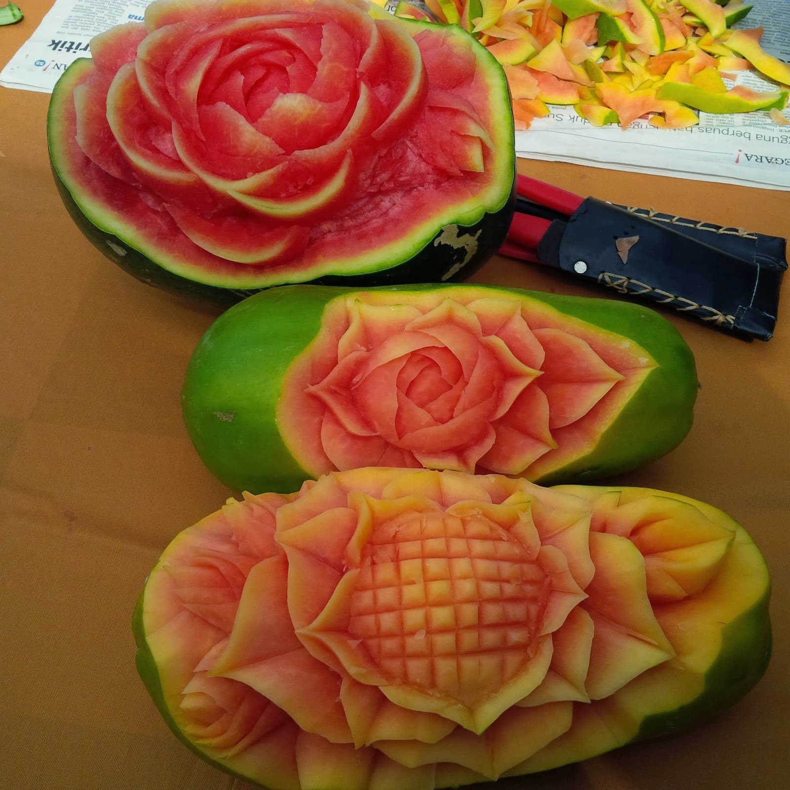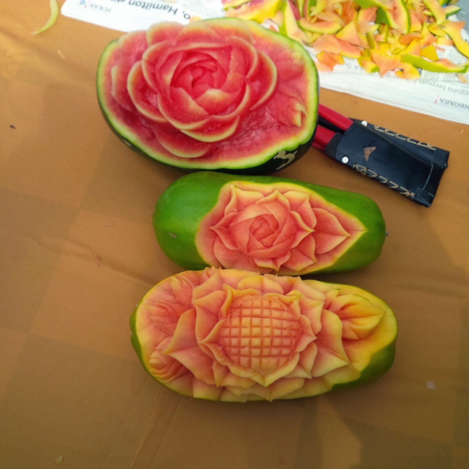 Jadi saksikanlah gambar-gambar menarik kursus tersebut terutama gambar menu yang siap terhidang untuk dinilai oleh para juri yang diketuai Puan Fauziah Ariffin. Juga ada gambar buah yang diukir cantik. Nampak mudah tetapi perlukan kemahiran dan pengalaman.