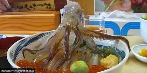 Fenomena yang berlaku selama ini, jika kita melihat ikan yang sudah dihidangkan di meja makan ternyata masih hidup, kita akan merasa terkejut, takut atau jijik. Tapi menu dengan sotong yang boleh ‘hidup semula’ ini justru sangat unik dan menarik.