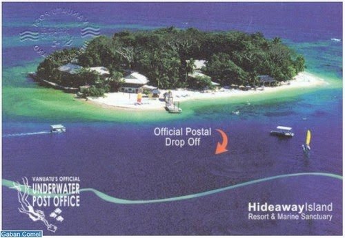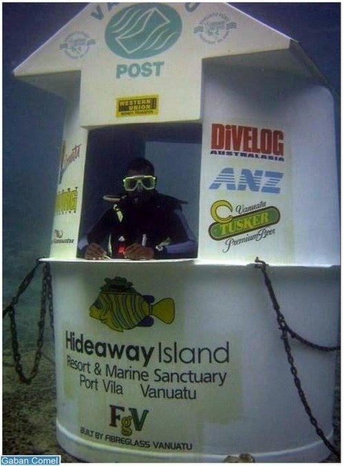 Terletak 50 meter dari pantai Pulau Hideaway, Republik Vaunatu, tiga meter di bawah permukaan air laut terdapat pejabat pos kecil. Underwater Post Office Vanuatu Post beroperasi setiap hari selama satu jam sejak kali pertama dilancarkan pada tahun 2003.