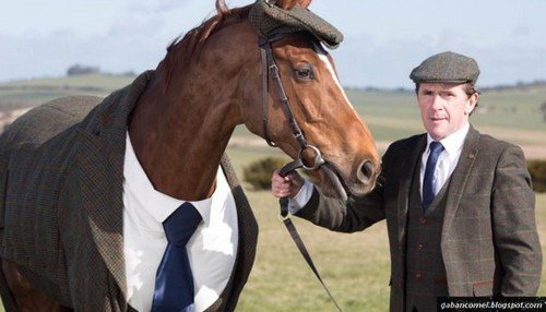 Morestead kelihatan berfoto bersama dengan joki Sir Anthony McCoy yang telah menjuarai 20 kali pertandingan lumba kuda. Sut yang dipakai Morestead pun penuh dengan kemeja, tali leher dan topi rata.