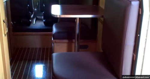 Dari bahagian kabinnya juga menggunakan dinding tambahan, kerusi, meja, serta peti yang dibuat dari bahan kayu jati. Untuk bahagian lantai menggunakan bahan marmar. Monitor saiz 19 inci, pengukur suhu automatik, peti sejuk, serta tiga buah kamera agar dapat memerhatikan keadaan di luar kereta juga ia tambahkan.