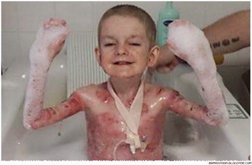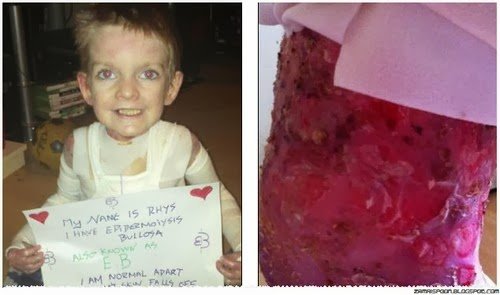 Seperti yang dilaporkan oleh Dailymail.com.uk , seorang kanak-kanak bernama Rhys Williams menderita penyakit kulit melecur sekaligus jarang ditemui . Keadaan ini membuat ia mengalami kesakitan yang luar biasa saat kulitnya disentuh . Kanak-kanak berusia 8 tahun berasal dari Bandar Manchester , itu menderita penyakit yang disebut epidermolisis bulosa .