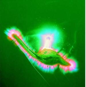 Gambar sebenar sel darah yang telah didedahkan kepada bunyi dan mula berubah medan elektromagnet di sekitarnya, bunyi bacaan Al Quran mengubah maklumat sel ini dan menjadikan ia lebih mampu melawan virus dan kecacatan Akibat daripada penyakit malignan.