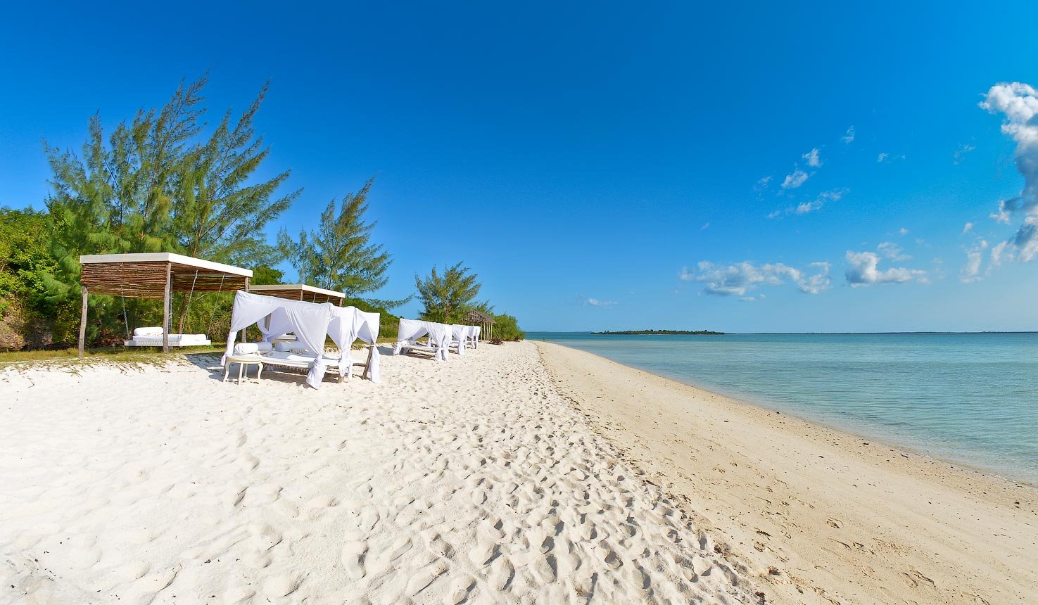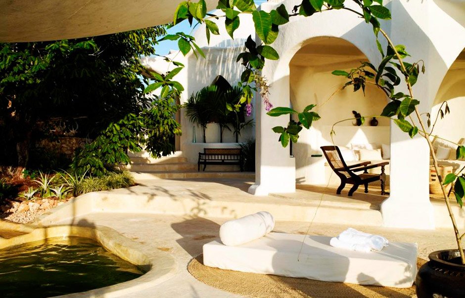 Secreted through the garden, their white domes visible above the green, Kilindi’s pavilions are ideally spaced, the view of the beach obscured only by the odd palm tree trunk. Like the main lodge, the design here is purposefully minimalist, the aim being once again to create an ambiance that both strikes a chord with the great outdoors and at the same time keeps the sun thoroughly at bay. So: lots of space, lots of shade, plenty sea breeze friendly doorways, windows, LED lighting plus cool cream colored signature stone floors and features. Each room includes butler service, a double bed, seating area, veranda, plunge pool(s) and en suite bathroom. All in all, fabulously fine rooms – big, unique and luxurious. You’ll be spending a lot of time in them – guaranteed.