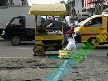 Setiap harinya, dia menyelesaikan solat dua waktu (Ashar dan Maghrib) di pinggir Jalan Gatot Subroto, tepat di sebelah sepeda dagangannya.