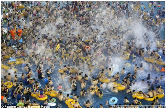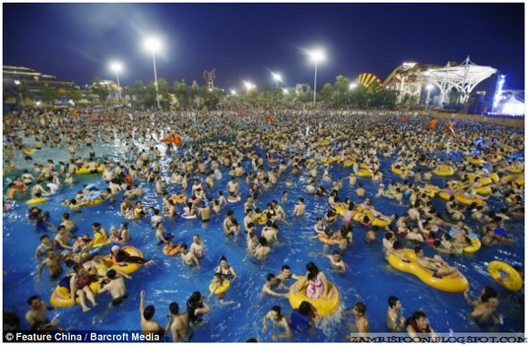 Dengan penduduk kira-kira 1.3 bilion orang, sebahagian masyarakat di China menghabiskan musim panas mereka dengan melompat ke kolam renang tempatan. Bolehkah anda membayangkan apa yang ada di dalam air itu?. Tentu saja dengan orang sebanyak itu air kolam sudah tidak bersih dan sihat lagi.
