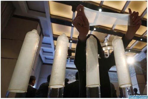 China adalah negara yang berusaha menekan angka pertumbuhan penduduknya . Dan seolah-olah salah satunya dilakukan dengan cuba membuat kondom paling nipis di dunia . Tebalnya hanya 0,036 mm dan mengalahkan produk pemegang rekod sebelumnya buatan Okamoto Jepun .