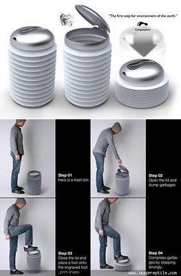 Pelbagai idea kreatif terhasil semata-mata untuk memudahkan kehidupan harian manusia dan juga membantu untuk menjaga alam sekitar. Antaranya tong sampah yang ‘berteknologi tinggi’. Walaupun tidak semuanya pratikal tetapi ianya merupakan sebuah inovatif yang menarik.
