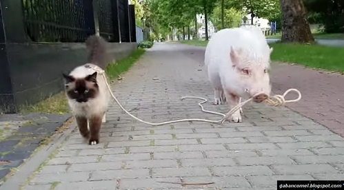 Persahabatan tidak mungkin boleh saja terjalin antara haiwan dan manusia. Namun antara kucing dengan seekor babi, seolah-olah perkara itu masih menjadi sesuatu yang jarang berlaku tetapi juga pelik.