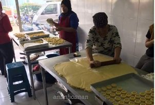 Dalam penulis merujuk beberapa usahawan dan pegawai yang mahir dalam pembuatan kuih tart nenas, umumnya kaedah pembuatan adalah agak sama. Biasanya bahan-bahan untuk mrmbuat kuih tart adalah untuk menyediakan jem Nenas untuk dijadikan Inti dan Adunan Tepong untuk dibakar kemudiannya. Bagi menyediakan 50 biji kuih tart biasanya perlukan masa selama 40 minit dimana 15 minit untuk membuatnya dan 25 minit untuk membakarnya. Bahan diperlukan untuk adunan adalah 300 gram tepung gandum, 4 sudu besar tepung jagung, 3 sudu besar gula aising, 200 gram mentega atau butter, 1/2 sudu teh esen vanila dan juga 2 biji kuning telur. Sementara itu keperluan bahan untuk membuat jem nenas untuk inti adalah 2 biji nenas yang perlu diparut dan toskan airnya, 600 gram gula, 1 batang kayu manis dan 2-3 titik pewarna kuning. Cara-cara menyediakan jem nenas dengan mengisar buah nenas dan nenas ini akan dimasak bersama gula. Apabila hampir kering maka masukkan pewarna kuning dan kayu manis dan ia dimasak dengan api perlahan sehingga kering. Kemudian masukkan dalam bekas khas. Cara untuk Penyediaan kuih tart dimulakan dengan menggaulkan tepung yang telah diayak dengan mentega atau butter sehingga menjadi tekstur seperti serbuk roti. Masukkan kuning telur dan esen vanilla sedikit demi sedikit dan diuli sehingga menjadi doh yang lembut. Rehatkan di dalam peti ais selama 1/2 jam dan kemudian dikeluarkan doh dan canaikan dengan cara melapik bahagian atas dengan plastik wrap. Pastikan semasa meleperkan ianya mempunyai ketebalan sesuai (sekitar 0.7-0.8 cm ketebalannya). Plastik dilapikkan bagi mempastikan doh yangg lembut tidak akan melekat di roller. Terap doh dengan acuan khas dan susn didalam dulang. Bulatkan inti jem nenas sekitar besar guli dan letakkan ditengah-tengah adunan tepong yang dicetak tadi. Ratakan jem nenas dengan tangan sehingga rata. Hiaskan dengan inti yang rata dan seragam sebelum dulang ini dimasukkan kedalam oven atau dibakar dalam ketuhar pada suhu 170- 175 darjah celcuis (suhu adalah bergantung kepada oven anda) selama 20- 25 minit. Bagaimana pun membuat kuih tart agak mudah dipelajari kepada ramai surirumah cuma terdapat beberapa petua untuk mendapatkan kuih tart yang enak, tahan lama dan cantik dipandang. Semuga artikel ini memberi info berguna kepada pembaca blog anim agro technology kali ini. Wasallam!!…