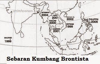 Daripada maklumat yang dipetik daripada Jabatan Pertanian, keujudan kumbang Brontispa ini telah menyerang tanaman kelapa di Maldives dan Vietnam sebagai endemik pada tahun 1999. Ini diikuti dengan berlaku serangan serius pada tahun 2000 di Thailand dan tahun 2001 di Laos PDR dan juga Kemboja (Sila lihat rajah diatas). Seterusnya pada tahun 2002 telah juga dilaporkan kumbang brontispa didapati telah menyerang Hainan Island diikuti dengan tahun 2004 di Myanmar dan pada tahun 2005 dilaporkan menyerang negara Filipina. Di Malaysia pula ia mula direkodkan pada tahun 2005 oleh beberapa pegawai dari Jabatan Pertanian iaitu di Bahagian Biosekuriti Tumbuhan. Penulis percaya ia mungkin telah wujud lebih awal daripada 2005 tanpa disedari oleh petani dan Jabatan Pertanian berdasarkan kajian rapi yang dijalankan. Apa yang dilaporkan sebelum ini, sehingga tahun 2004 hanya terdapat sejenis perosak kumbang iaitu spesis Plesispa reichi sahaja yang ada dikawasan kelapa terutamanya di kawasan pesisir pantai dimana banyak tanaman kelapa. Laporan ini adalah berdasarkan kepada rekod terawal dimana kumbang jenisPleisspa reichei menyerang kelapa di Johor pada tahun 1912 (Corbett, G.H., 1923). Jika ini dijadikan panduan, bermakna kemasukkan perosak ini mungkin dibawa masuk kedalam negara melalui Thailand atau juga Indonesia (jauh sedikit). Kemasukan pengimpotan tanaman pamla hiasan daripada negara jiran Thailand ke Malaysia melalui pintu darat masuk utara Semenanjung Malaysia mungkin telah membawa masuk sama kumbang ini kenegara kita. Ia kemudian terus merebak sehingga terdapat banyak kawasan lain di Malaysia dalam masa beberapa tahun kebelakangan ini.