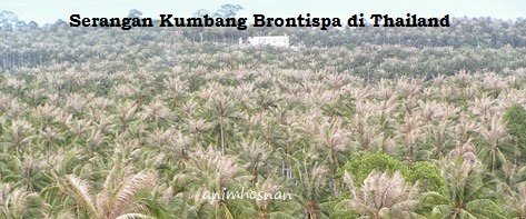 Dalam kita hendak kenal akan kumbang brontispa lazimnya perlu membuat rujukan. Jika kita hendak buat diagnosis berikut adalah pencirian bagi kumbang dewasa mempunyai saiz panjang sekitar 8.5-9.5 mm dan lebarnya adalah sekitar 2.0-2.5 mm. Kumbang ini berbadan leper dan meruncing dimana Kumbang Jantan kebiasaannya lebih kecil dari betina (Sila lihat foto paling atas). Kumbang brontispa mempunyai warna coklat kemerahan dan kehitaman, elektra coklat atau hitam dan ada bertanda seperti bentuk terpintal pada elektra. Ciri paling unik bagi kumbang ini adalah pada bahagian Toraks berbentuk segi empat dan dapat dilihat dengan jelas. Dari segi biologi dan ekologi, lazimnya pada semua peringkat hidup kumbang brontispa berada dalam bahagian pucuk kelapa yang belum terbuka. Ini bermakna untuk mencari kumbang ini perlu memeriksa pucuk pokok kelapa dimana jika pokok kelapa sudah tinggi memang agak sukar untuk melakukannya. Kaedah yang sesuai untuk mengetahui keujudan kumbang ini melalui pemasangan perangkap khas. Bagaimana pun pada anak pokok kelapa yang baru ditanam kita boleh memeriksanya. Kumbang betina akan bertelur seawal umur 15 hari dimana lokasinya adalah pada bahagian pucuk kelapa. Saiz telur sekitar 1.8-2.0 mm dengan kapasiti bertelur sehingga 100 biji atau lebih. Kumbang ini apa yang saya lihat mempunyai sebanyak 4 peringkat instar larva dimana pada larva instar ke 4 bersaiz 7.0 mm – 8.0 mm. kajian menunjukkan bahawa jangka masa daripada peringkat telur hingga kepada peringkat dewasa adalah sekitar 35 – 42 hari. Keseluruhan jangka hayat kumbang brontista adalah sehingga 6 bulan. Kepada mereka yang ingin maklumat lanjut mengenai kumbang ini boleh menghubungi pegawai Teknikal Bahagian Biosekuriti, Jabatan Pertanian Malaysia. Wasallam!.