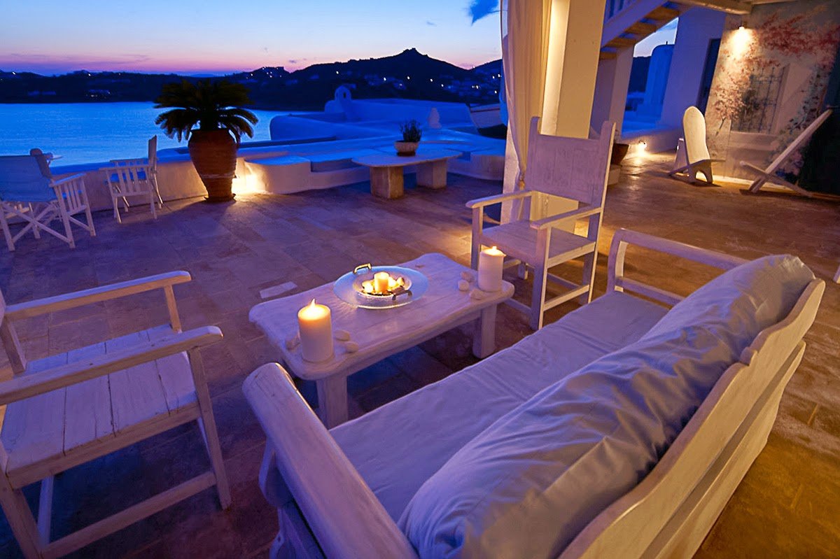 La Villa Blue is located in the most prestigious area of Agios Lazaros, facing the west part of Mykonos and the historical island of Delos.
