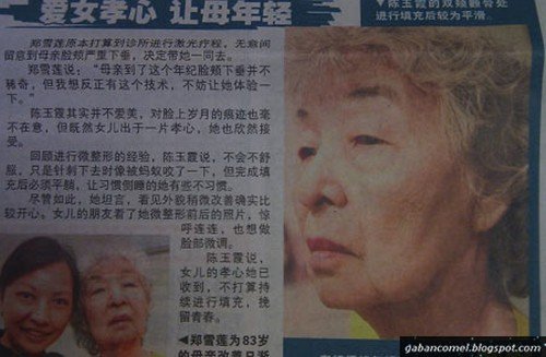 Meskipun tidak sedikit wanita tua melakukan peremajaan kulit, tapi sepertinya sangat jarang melihat nenek lama sebagai Chen yang rela melakukan pembedahan plastik agar kelihatan lebih muda.