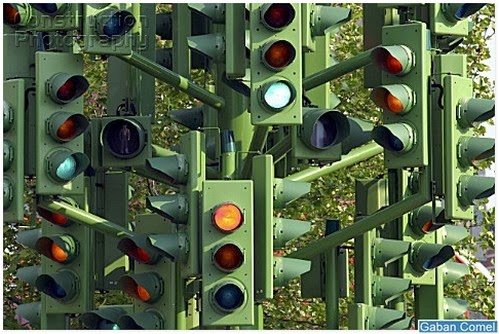 Kedengaran mungkin aneh , apalagi harus melihat ke 75 set lampu untuk menentukan keputusan ketika berada di persimpangan . Tapi memang mustahil lampu lalu lintas dibuat sebanyak itu . Kerana nyatanya lampu lalu lintas dengan 75 set hanyalah sebuah karya seni dari Pierre Vivant , pemahat Perancis dan seniman yang bekerja di pusat bandar London .