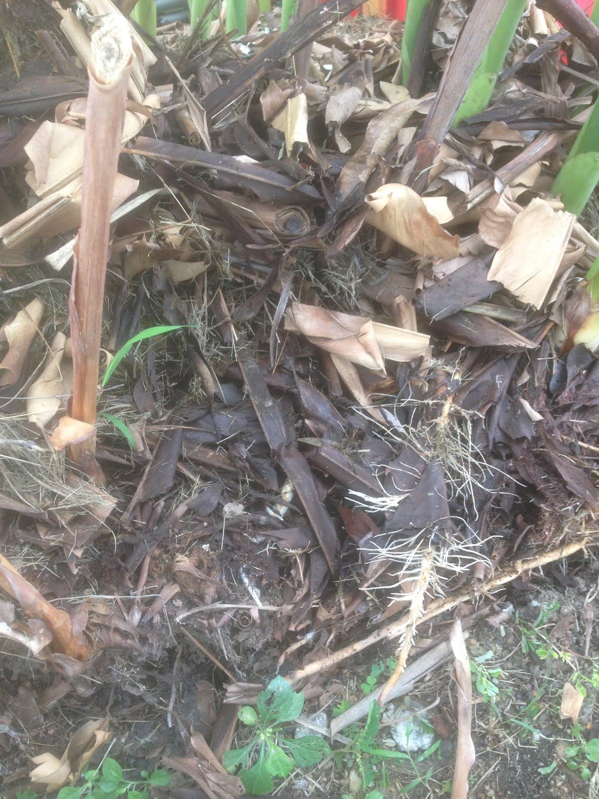 Pelarasan ( adjustment ) dibuat supaya selari dengan batas timbun yang lain. Apabila bahan2 sungkupan dialihkan, kelihatan bahan sungkupan yang terdahulu sudah menghitam dan mereput. Bahan2 organik yang sudah mereput akan diurai oleh organisma tanah menjadi nutrien2 yang dapat diguna kembali oleh tanaman.