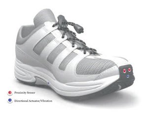 Peneliti dari Hewlett-Packard Labs di Bangalore, India bernama Anirudh Sharma mengembangkan sebuah sepatu yang dilengkapi dengan sensor getar dan proximity yang biasa ada di ponsel.