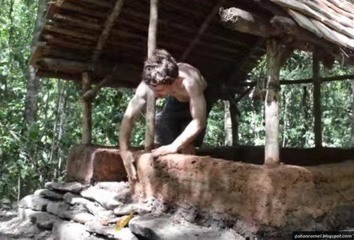 Mulai dari menebang dan mengumpul batang-batang pohon. Kemudian, dengan berbekal alat sederhana ia membina sebuah rumah untuk dirinya sendiri.