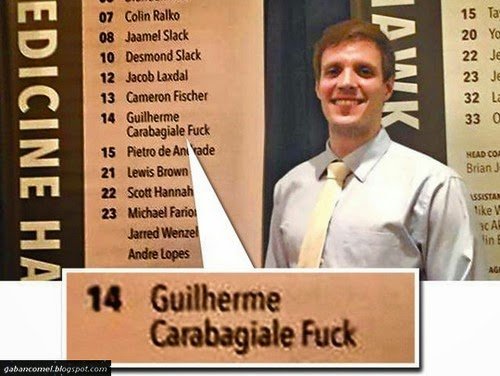 Lelaki tersebut diketahui mempunyai nama lengkap Guilherme Carabagiale F ** k. Ia merupakan warga negara Brazil yang belajar di Kanada dan meminta agar namanya disebut dengan “Foo-kee” yang sesuai dengan bahasa Jerman sebagai keturunannya.