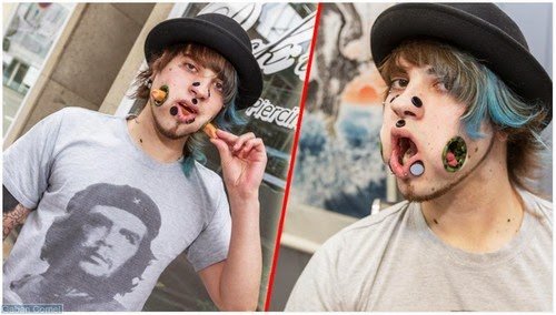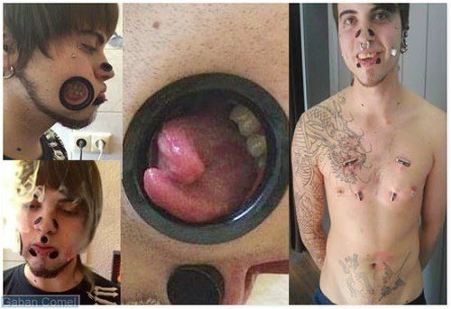 Seorang lelaki di Jerman sangat mencintai seni tubuh tatto piercing , berbeza dengan kebanyakan orang ia membuat piercing yang terbilang ekstrem di beberapa bahagian tubuhnya . Seperti dua lubang mulut di bahagian pipi kanan dan kiri . Lubang ini kelihatan seperti terowong besar dengan pandangan gigi di kedua sisi .