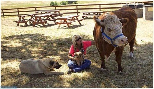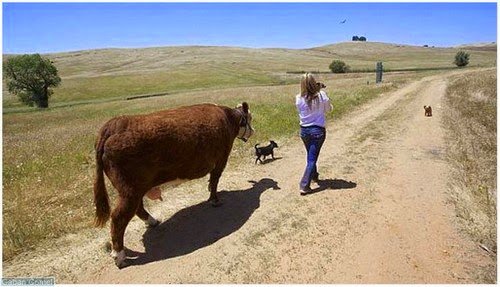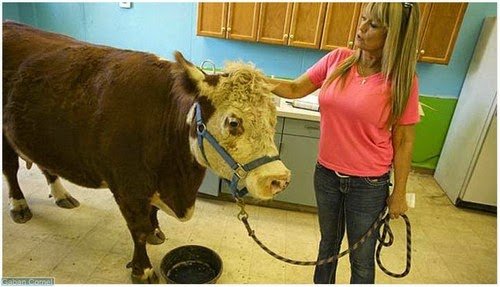Seekor lembu yang telah diselamatkan dari pembuangan haiwan liar di California, Amerika Syarikat menganggap dirinya anjing, bahkan lembu itu tidak suka makan rumput. Pekara itu diketahui oleh Beth DiCaprio, pengurus Grace Foundation, yang telah menyelamatkan lembu yang kemudian diberi nama Milkshake itu.