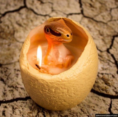 Seperti yang dipetik dari laman metro.co.uk, sebuah syarikat bernama Firebox telah mencipta sebuah lilin unik berbentuk telur. Di saat lilin tersebut dinyalakan serta telah meleleh, akan muncul patung bayi dinosaur yang lucu, comel dan sangat unik. Awalnya, bentuk dari lilin yang seperti telur ini seakan dengan telur. Permukaan luarnya pun sedikit kasar dan nampak nyata layaknya telur sebenar.