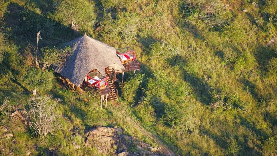 Kiboko Starbeds are 20 minutes’ drive from the lodge and overlook a waterhole. Each Star Bed is designed on a raised, handcrafted, wooden platform partially covered with a thatched roof. Homemade ‘Mukokoteni’ beds can either be wheeled onto the open deck for a night under the stars, or left under the shelter of the roof. Each platform has an en suite bathroom, and a main shared dining / seating area with fully staffed kitchen.