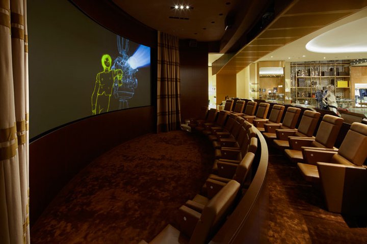 Next to the interior, Marino also designed a series of furniture pieces for the store. Similar to other maisons, the Louis Vuitton Étoile Maison features special retail sections and merchandise, such as a bag bar, trunk room and its so-called Haute Maroquinerie line of leather goods. Obviously, the entire range of Louis Vuitton collections for men + women’s presented here. But what makes the roman maison unique is its 19-seat cinema which screens short movies by renowned directors.