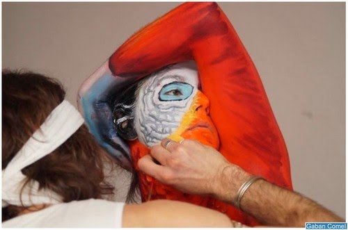 Walaupun gambar ini kelihatan seperti burung kakak tua yang bertenggek di pokok, percaya atau tidak, gambar itu sebenarnya adalah sebuah foto seorang wanita yang seluruh tubuhnya telah dicat menyerupai burung tropika ini. Gambar ini adalah karya seni rupa pelukis tubuh, Johannes Stoetter mencipta ilusi seni tubuh yang rumit yang kelihatan sangat awesome