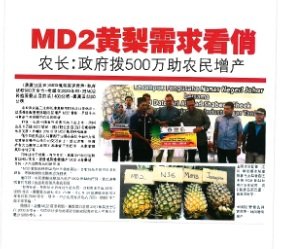 Dalam Majlis ini YB Menteri telah berjaya melancarkan Skim Tanaman Nanas MD2 bagi pekebun kecil nanas. Skim baru ini bertujuan untuk memberi peluang kepada pekebun kecil nanas yang lama menanam nanas pelbagai varieti kepada nanas premium MD2 untuk kawasan seluas 1.2 hektar kebawah bagi meraih pendapatan lebih tinggi. Ketua Pengarah LPNM (Sila lihat foto disebelah) menjelaskan dimana skim ini adalah bagi melancarkan permintaan nanas MD2 bagi pasaran luar negara masa kini. Kerajaan telah memperuntukkan sebanyak RM 5 juta untuk penanaman nanas MD2 pada tahun 2017/2018 yang dijangka akan memberikan manafaat kepada 250 orang penanam nanas sedia ada dengan sasaran keluasan sekitar 300 hektar (bersamaa 750 ekar) terutama dari kawasan tanaman nanas di Johor. Pada masa ini Negeri Johor merupakan pengeluar utama nanas nenaga dengan 68% daripada penanaman dan pengeluaran dari negeri ini. Setiap pemohon yang berjaya akan menerima bantuan benin nanas MD2 (Benih nanas MD2 pada masa ini adalah termahal berbanding dengan nanas varieti lain) yang menjadi bahan input terpenting untuk memulakan penanaman nanas premium ini. Pengenalan skim penanaman nanas MD2 kepada pekebun kecil ini dijangka mempercepatkan lagi pengeluaran nanas MD2 dimana mereka yang mempunyai sijil MyGAP sedia ada akan diberikan keutamaan untuk bantuan skim ini. Lawatan YB Menteri ke Kelompok Nanas Parit Ghani memberikan keceriaan kepada industri nanas negara seperti dilaporan oleh beberapa akhabr tempatan (Sila lihat foto dibawah). Semug tulisan ini memberikan info berguna kepada pembaca blog anim agro technology kali ini. Kepada mereka penanam nanas sedia ada yang berminat untuk mendapatkan keterangan lanjut sila berhubung dengan Pejabat LPNM Negeri berhampiran anda diseluruh negara. Wasallam!!!.