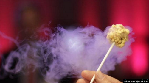 Makanan berwarna warni ini terbuat dari bulatan bijirin yang disalut oleh nitrogen cair. Nitrogen cair inilah yang mencipta kesan berasap pada mulut.