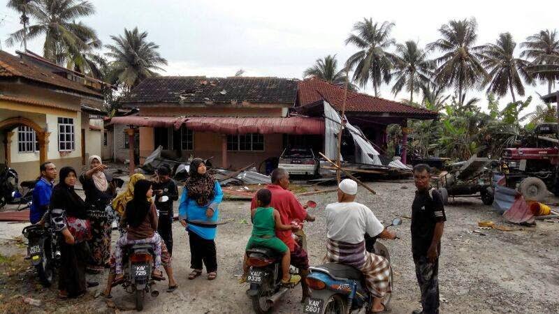 Berdasarkan maklumat, angin berpusar setinggi bangunan empat tingkat itu dilihat terbentuk sejurus hujan lebat melanda, sebelum menerbangkan bumbung dan dinding beberapa rumah di Kampung Alor Besar.
