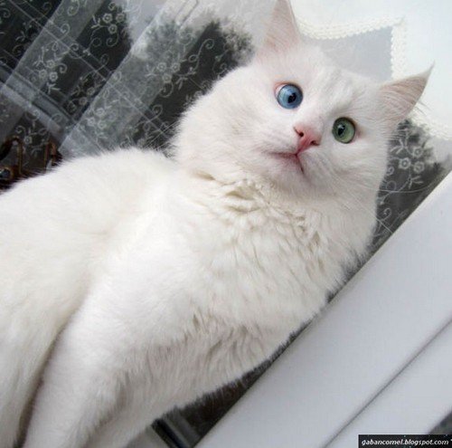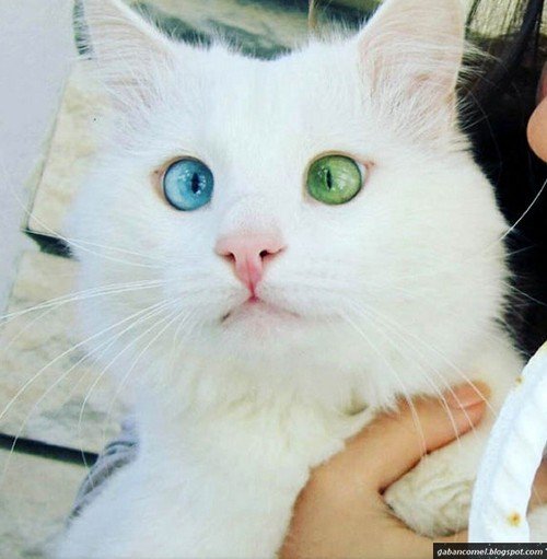Alos merupakan kucing baka yang dikenali sebagai Van Cat menyebabkan haiwan itu memiliki mata berwarna biru dan hijau.
