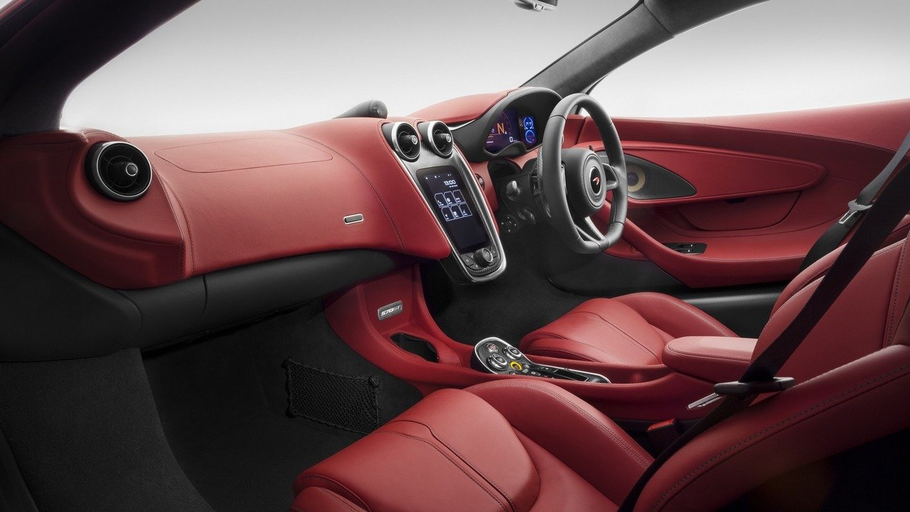 On the McLaren 570GT, you can find the signature dihedral doors and a cabin that appears to be more ergonomic and spacious. There two eight-way electrically adjustable sport seats have been integrated, upholstered in leather. There is also an easy to operate control interface that controls air conditioning, telephony, navigation system and audio system thanks to a simple centrally-mounted touchscreen. And all can be controle for the pilot or the passengers.