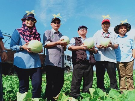 TANAMAN MELON (Cucumis melon) merupakan antara tanaman penting ayang dilakukan oleh kelompok petani di Kampung Sungga, Port Dickson, Negeri Sembilan yang penulis blog buat tinjauan teknologi. Melon adalah sejenis tanaman jenis tembikai dari keluarga CUCURBITACEAE yang kini sangat popular ditanam di Malaysia. Buah melon sangat digemari kerana rasa yang sedap, manis, bentuk yang menarik dan digemari oleh semua golongan peminat dalam masyarakat. Ramai tidak mengetahui bahawa melon adalah berbeza dengan Tembikai (Watermelon). Melon mempunyai pelbagai nama lain seperti Melon; Musk Melon; Cantauloupe (English), Blewah; Semangka ; Londo (Indonesia), bluwak (Malaysia), Milon ; Iitimon ; Atimon (Filipina), Trasak sorroow (Cambodia), Teeng laay (Laos) dan taeng-tai ; Taeng-lai (Thailand). Penulis akan berkongsi maklumat mengenai teknologi tanaman melon hasil tinjauan teknologi yang dilakukan bersama rombongan PPN NS dan AO Daerah di Kg Sungga, Negeri Sembian. Biasanya projek penanaman melon diatas tanah mineral bercerun ini adalah kurang risikonya berbanding dengan tanaman jenis melon dikawasan bekas tanah sawah. Kini penulis boleh juga ada melihat dimana ada banyak aktiviti penanaman melon yng mana ia di usahakan secara moden dalam rumah Kalis Serangga (SPH) dengan sistem fertigasi. Penulis blog ada membuat posting mengenai tanaman melon atau tembikai susu sebelum ini yang boleh dijadikan bahan rujukkan anda semua (Sila klik disini). Buah Melon atau tembikai susu ini memang ditanam dan ada dihidangkan dikebanyakkan hotel diseluruh Malaysia dan Singapura. Ini kerana tanaman melon ini ditanam tanpa mengikut musim dan mam pu menerima harga dan permintaan yang konsistent. Artikel subuh ini dalam blog “Anim Agro Technology” saya menulis mengenai usahawan menanam melon di Port Dickson yang boleh dijadikan bahan rujukkan dan bacaan.