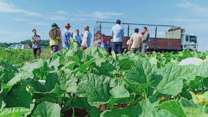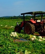 Rakan beliau bernama En Aw Ah Tiong pula mempunyai kebun seluas 16 hektar untuk penanaman melon juga dikampong sama. Beliau mempunyai trektor yang penting untuk aktiviti penanaman melon komersil (Sila lihat foto disebelah). Kerja-kerja penyediaan tanah adalah paling kritikal didalam penanaman tanaman singkat masa seperti melon ini. Dahulu semasa beliau menyewa trektor dari pihak luar jadual tanaman tidak dapat diikuti dan semakin sukar mendapatkan perkhidmatan trektor masa kini dengan kos yang agak tinggi. Beliau yang sedang menuai hasil semasa aktiviti penuaian melon gembira kerana hasil kali ini lebih baik dan harga pasaran sederhana tinggi. Sepokok hanya dibiarkan 1 – 2 biji sahaja untuk berbuah sementara buah lain akan dibuang dimana in mempastika satu atau dua biji tembikai susu ini besar dan beratnya melebihi 2 kg sebiji. Menurut Ah Tiong pada musim lepas dia menghasilkan sebanyak 387,400 kg buah melon yang dipasarkan dengan pulangan hasil sebenyak RM60,000 setahun. Buah daripada kelompok kg Sungga ini dihantar atau diambil oleh pemborong buah di Yong Peng dan Selayang. Buah Melon akan dihantar kepada Pusat Pengumpulan Hasil Swasta di Yong Peng akan digred dan dihantar ke Singapura. Buah yang dihantar ke Selayang akan diedarkan kepada pengguna di Lembah Kilang terutama dihotel-hotel yang selalu menghidangkan buah melon setiao kali hidangan makanan diberikan.