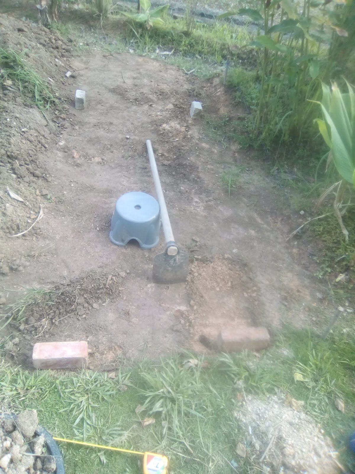 Batu bata sebagai asas untuk diletakkan papan dan kayu