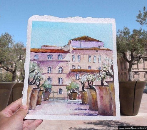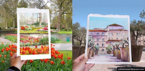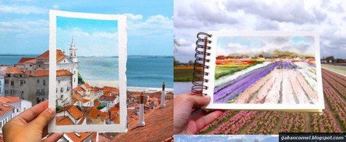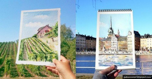 Itupun yang terjadi pada Elena Efremova yang kerap melancong ke beberapa tempat seperti Marseilles, Stockholm dan Lisbon. Seniman dari Rusia yang tinggal di Perancis ini mengabadikan keindahan pemandangan di beberapa tempat dengan cara yang cukup menarik perhatian.