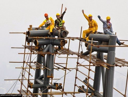 Pekerja pun meraikan kejayaan pembinaan bangunan tersebut, di ketinggian tersebut dan cukup ekstrem. Mereka kelihatan gembira, sudah boleh membina bangunan dengan ketinggian tersebut.