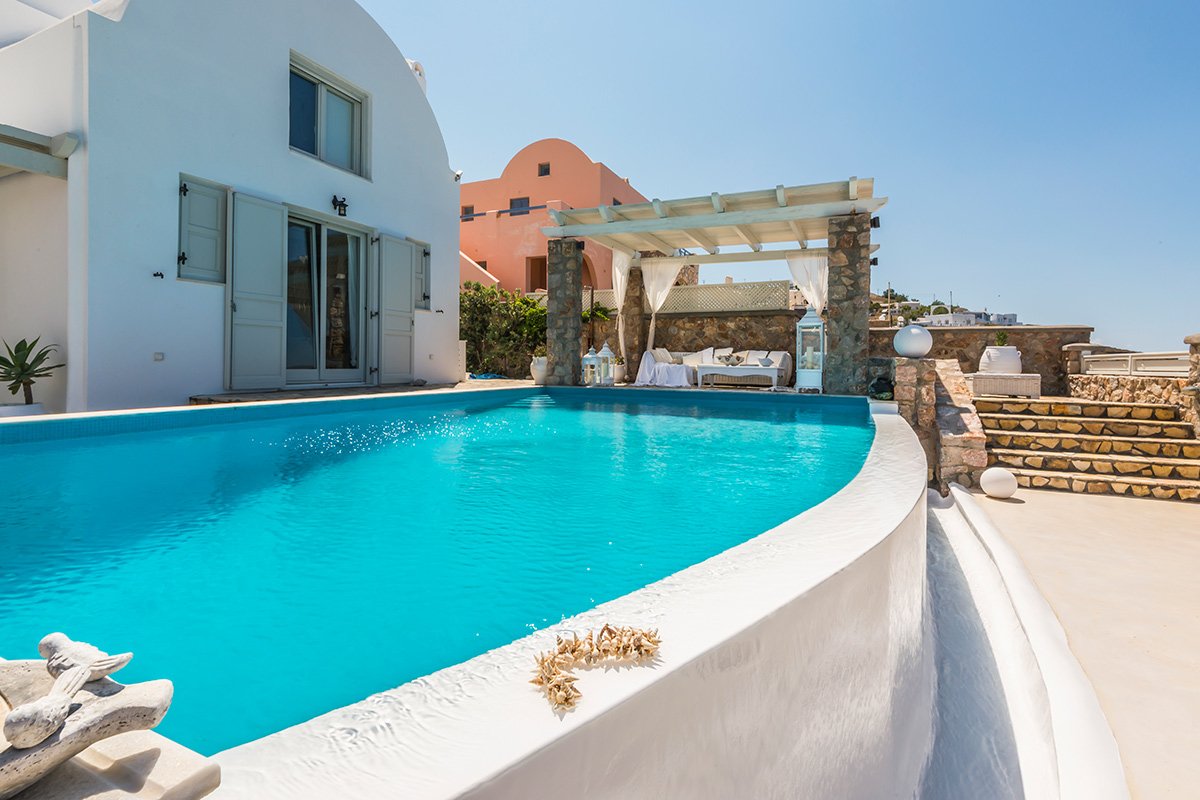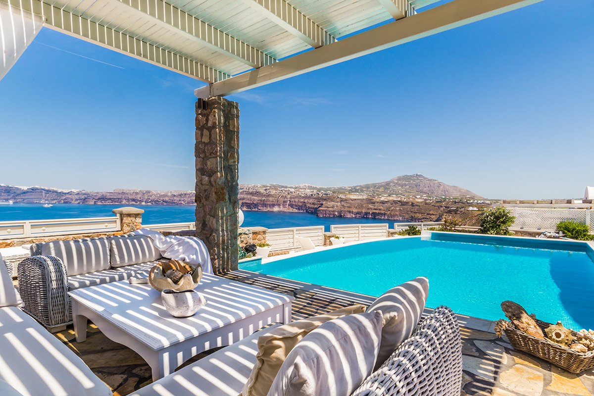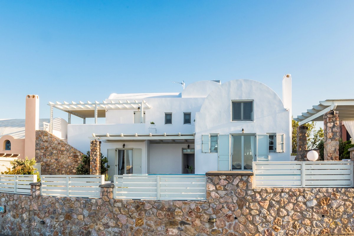 At Akrotiri in a beautiful spot with amazing views of the volcano and the caldera of is situated the beautiful 5-bedroom villa, Michaela Residence.