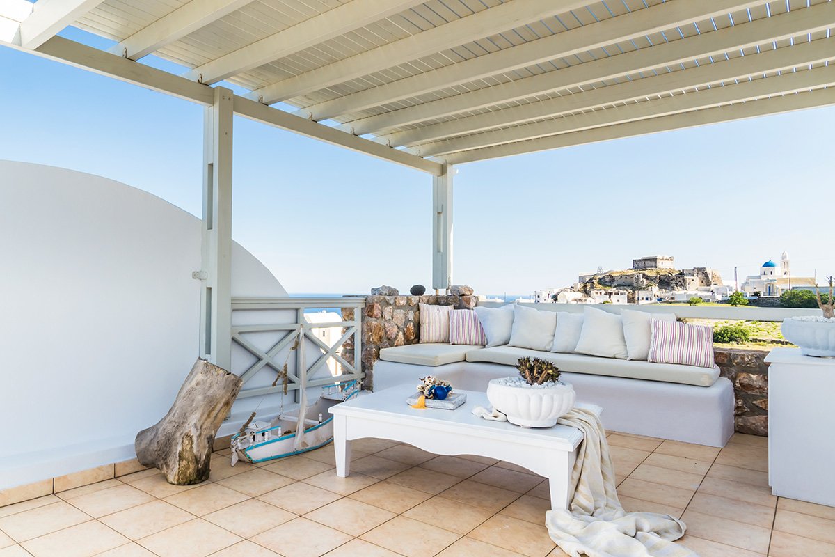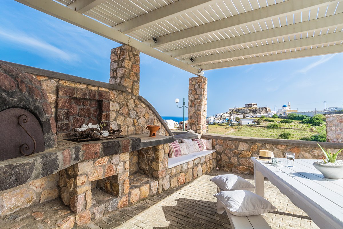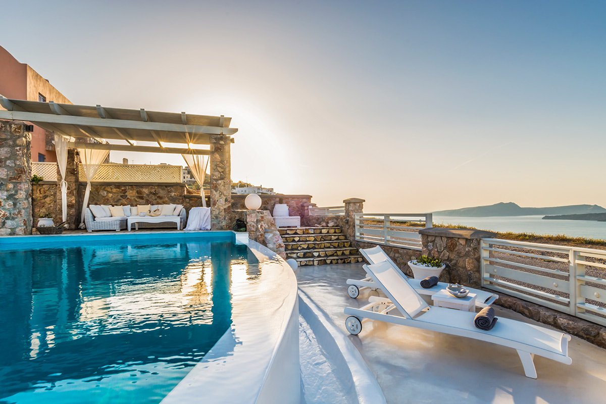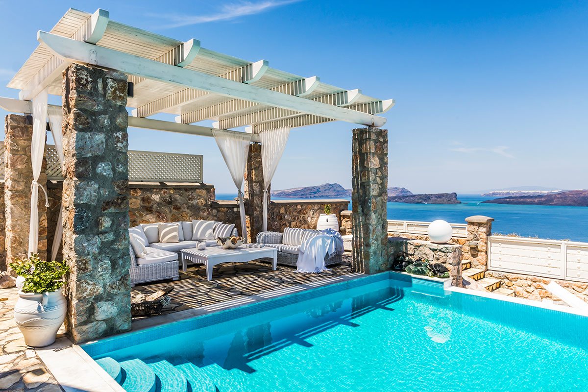 At Akrotiri in a beautiful spot with amazing views of the volcano and the caldera of is situated the beautiful 5-bedroom villa, Michaela Residence.