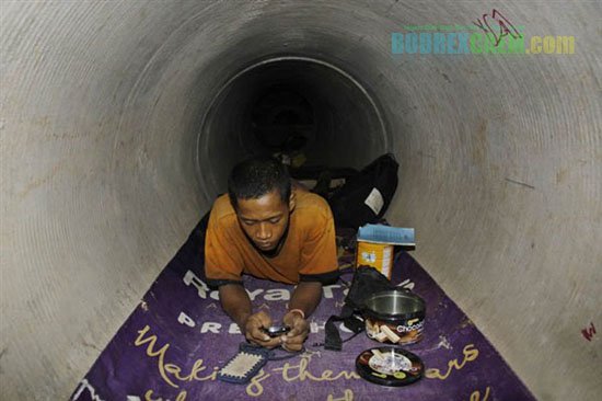 Minimnya upah buruh dan mahalnya harga sewa rumah di Jakarta membuat Abdul Malik harus rela tinggal di gorong-gorong air yang tidak terpakai.