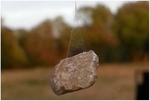 Sebagai contoh, mungkin saja batu itu sedang berada di permukaan lain seperti atap kereta sebagai contoh dan labah-labah mengait jaring ke batu kerana dianggap sebagai permukaan yang kukuh. Ketika kereta berpindah, batu itu akan tertinggal dan bergantung oleh jaring labah-labah.