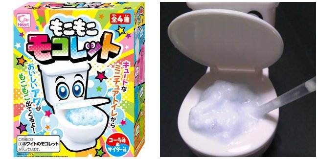 Keunikan permen ini adalah tempat minumnya yang bisa Anda buat sendiri. Anda perlu membuat toilet susunnya dulu, sehingga membentuk toilet porselen yang lucu. Minuman unik ini terdiri dari dua rasa yaitu soda dan sari apel. Cara membuatnya adalah dengan mencampur bubuk minuman dengan air sehingga bentuknya akan seperti busa.