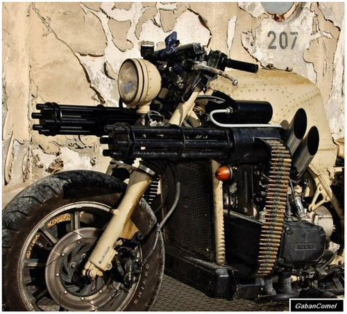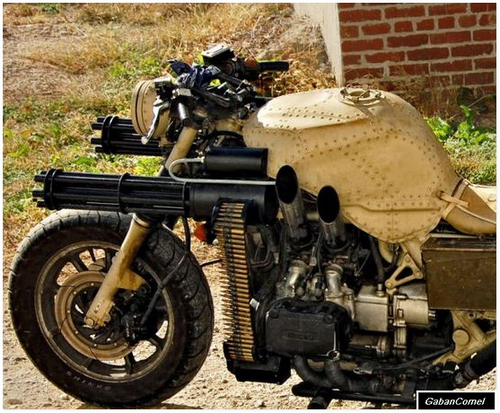 Garrett Larson dan Dillon Shoffner dari Show Stoppers Studio, LLC membeli sebuah motosikal 1984 Goldwing dan dilengkapi dengan sepasang senjata . Reka bentuk keseluruhannya sangat bagus, tetapi senapang adalah perkara yang menjadikan sebuah mesin pembunuhan pasca apokaliptik ini hebat.