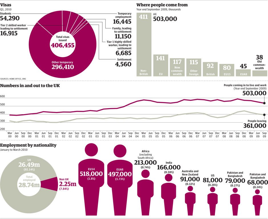 The EU says employment rates for non-EU nationals are lower than for nationals, which holds back economic advancement and integration. One important reason for this is a lack of language skills. The Migration Policy Institute says that, in 2007, 28 per cent of children born in England and Wales had at least one foreign-born parent. That rose to 54 per cent in London. Overall in 2008, 14.4 per cent of children in primary schools had a language other than English as their first language.