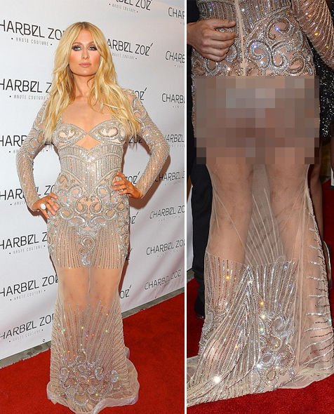 Meski berusaha keras untuk tampil stunning, bencana fashion yang dialami Paris benar-benar mampu membuatnya gagal keren. Terlebih lagi, pakaian dalamnya nampak mengintip dari balik dress yang ia kenakan.
