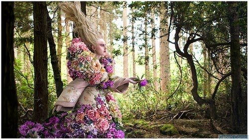 Jurugambar Kirsty Mitchell, telah meenghasilkan siri foto-foto menkjubkan yang diilhamkan oleh cerita dongeng. Berjudul ‘The Last Dance of the Flowers, pakaian indah itu tersusun dari 1,000 bunga berwarna ungu yang muncul dari hutan dan bergabung menjadi kot.